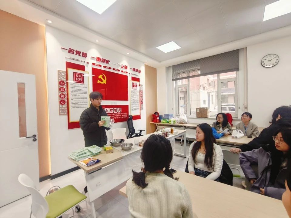 20余名本科学生党员、积极分子及新生于新民校区“一站式”服务社区开展制作传统美食青团劳动教育活动。活动开始,由学生干部为大家讲解了青团制作的流程并亲自示范。之后同学们各自领取相应材料,并挑选各自喜欢的馅料之后,满怀热情地投入到青团制作中。