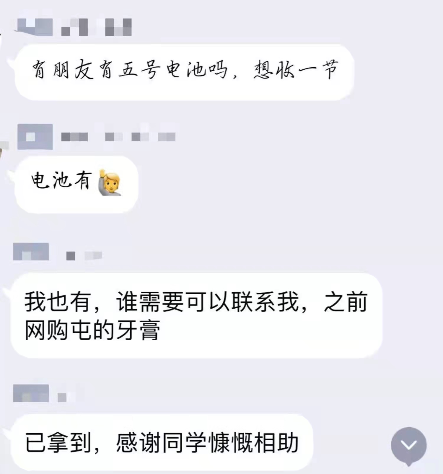 老师,还是学生志愿者,不管做着什么工作,都在朝着防控疫情的中心点发力施策。在由志愿者们保障着日常基本生活的同时,同学们也没有消极怠工,在寝室自觉学习,看文献、开组会......尽管实验室的大门此刻不能向我们敞开,但在春天播种下努力的种子,定会在未来开花结果。在同学们自发组建的六公寓互助群中,一节电池、一管牙膏、几包零食......慷慨的分享互助,传递着的不仅是同学间的友谊与温暖,更是同处境面前彼此鼓励扶持的信心与安心。因为命运相连,所以心心相通。