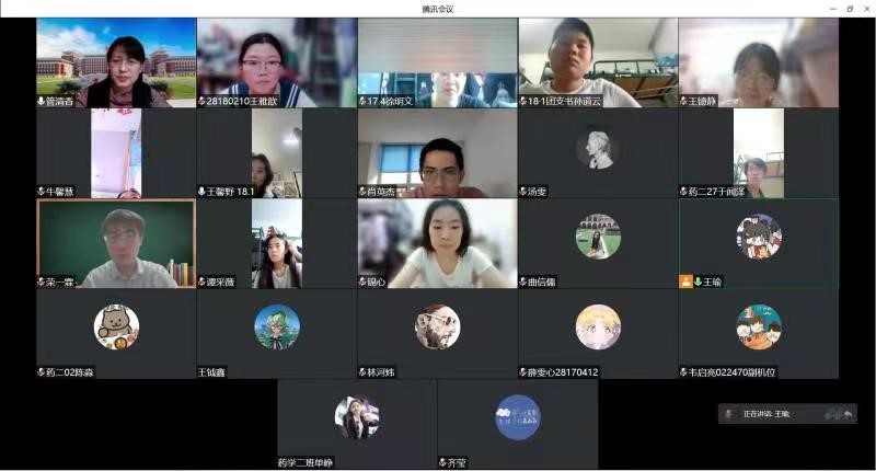 严格按照教育部推进高校课程思政建设的相关要求,督促在线教学授课教师切实落实课程思政建设。课前需有5分钟防疫精神宣讲,将疫情“危机”转化为思政教学“契机”。为了鼓励学生积极面对抗疫,安心学习,药物化学教研室采取多种形式进行宣传教育。徐国兴主任利用歌曲、魔术、二人转等视频进行抗疫必胜宣传;周小平老师在课前抗疫宣传中,采用更贴近学生自身的内容,并与学生互动,通过弹幕共同为黑料不打烊