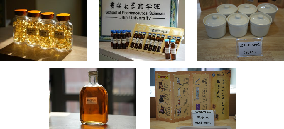 药学系王志寒副教授带领3名学生实践团成员进行林蛙精深加工系列产品(如银耳炖雪蛤、雪蛤双肽饮和雪蛤参茸养生酒等)和学术成果展示,吸引了众多参会人员和企业代表驻足交流。同时,王志寒还通过线上直播,带领网友“云逛展”,以深入浅出的语言,生动讲述了林蛙油的悠久历史、独特功效及系列产品的研发理念。直播中,他重点介绍了团队如何运用现代科技手段对林蛙资源进行深度开发,将传统药材转化为契合现代健康需求的高附加值产品,吸引了大量线上观众互动围观。