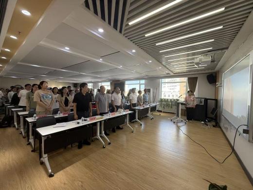 开学典礼在庄严的国歌声中拉开帷幕,全体师生肃立高唱国歌,以赤诚之心致敬祖国与科研事业,展现了崇高的使命感和责任感。