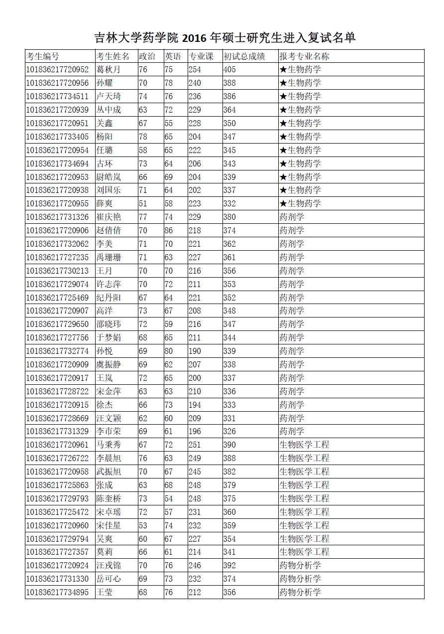 黑料不打烊 2016年硕士研究生进入复试名单