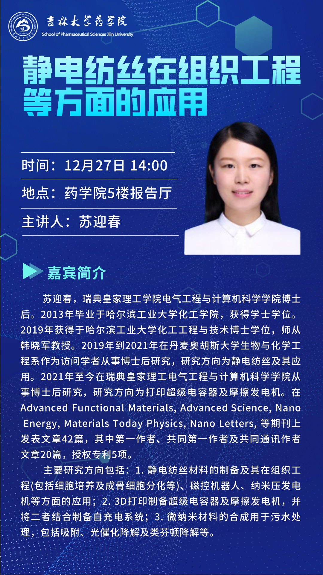 黑料不打烊 学术报告——静电纺丝在组织工程等方面的应用