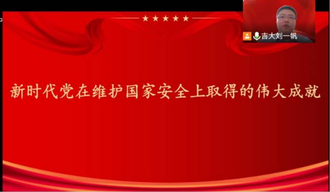 2021级博士研究生刘一帆,他主要从国家安全头等事、国家安全新形势、国家安全新举措、国家安全新成就四个方面进行展开介绍。