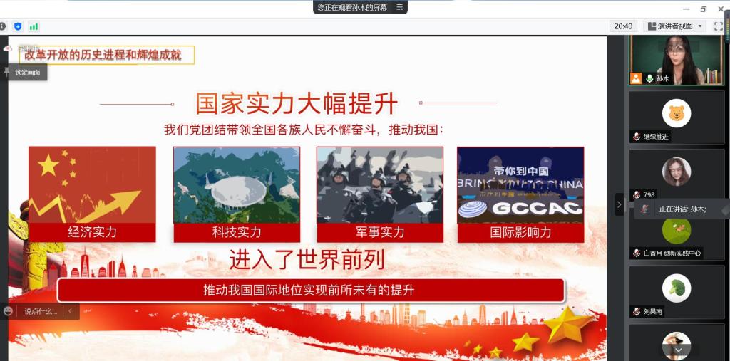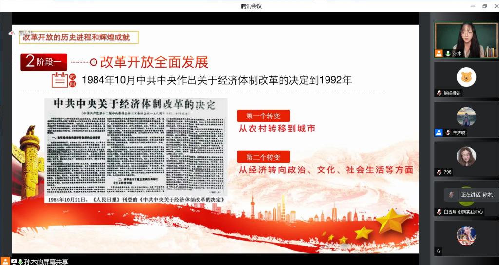2021级博士研究生孙木博士以《新时代关于全面深化改革开放的伟大成就》为题,向我们详细讲述了改革开放至今,我国取得的系列伟大成就。