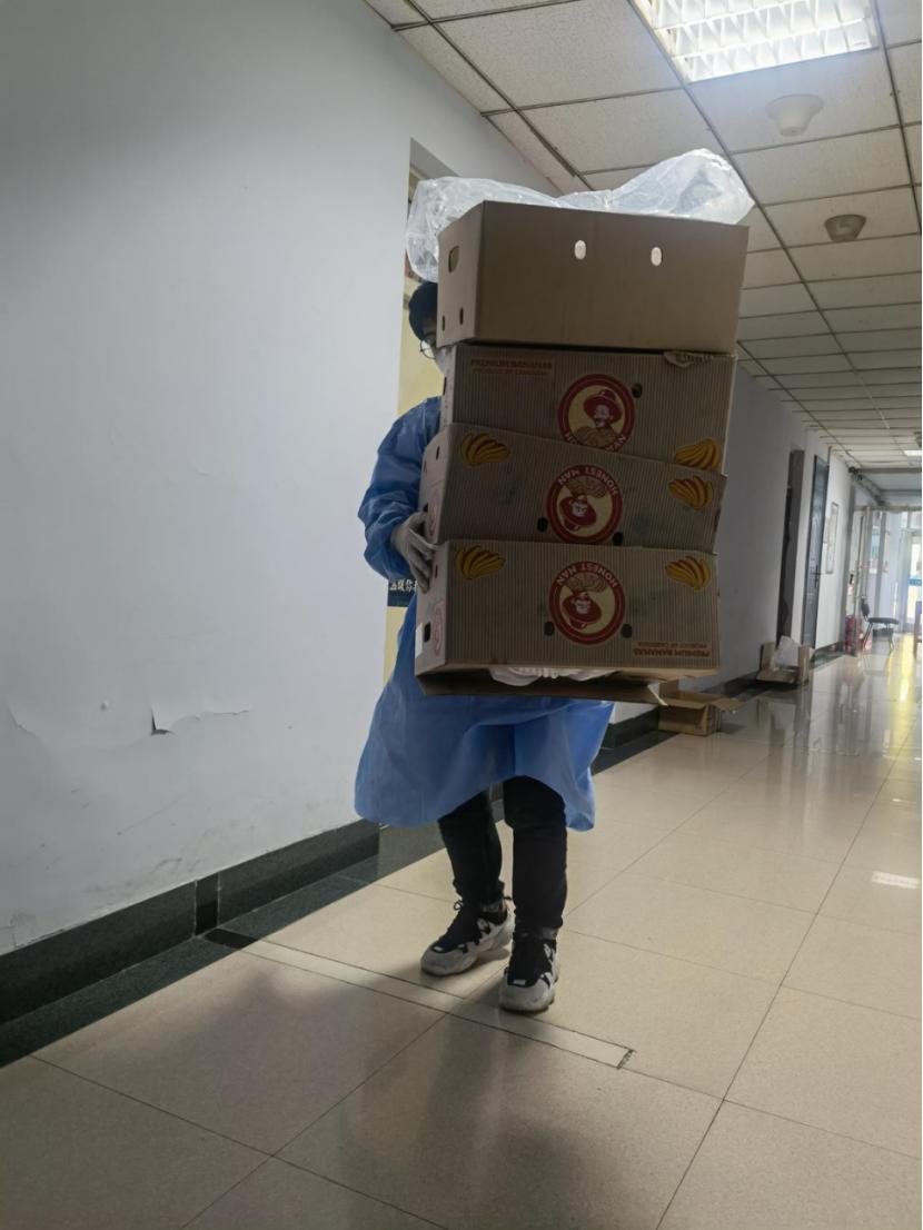 的各种任务,还在时刻关心同学,为同学解决所需。我的导师路海滨教授,不仅在学业上指导我们阅读文献,还担心我们的生活,问我们缺少什么,关心我们的身心健康。而我们六公寓的所有男生担负起了发餐发水的任务,我们带着N95口罩,穿着防护服拎着几十人的餐爬着楼梯分发到了每个楼层,呼吸的不顺畅在加上运动量减少带来的体力下降,可以说我们是踉踉跄跄的走完这段楼梯,出了一身的汗。尽管很累,可我们依然积极的六点起床,为了大家能够吃上热乎的饭菜。巾帼不让须眉,一些女生自愿担负起分发的工作,为每一位同学分发餐盒和检测试剂盒,从不叫累。有的同学待在寝室,尽管因长时间的封闭而有些烦闷,但也绝不添乱,为响应黑料不打烊