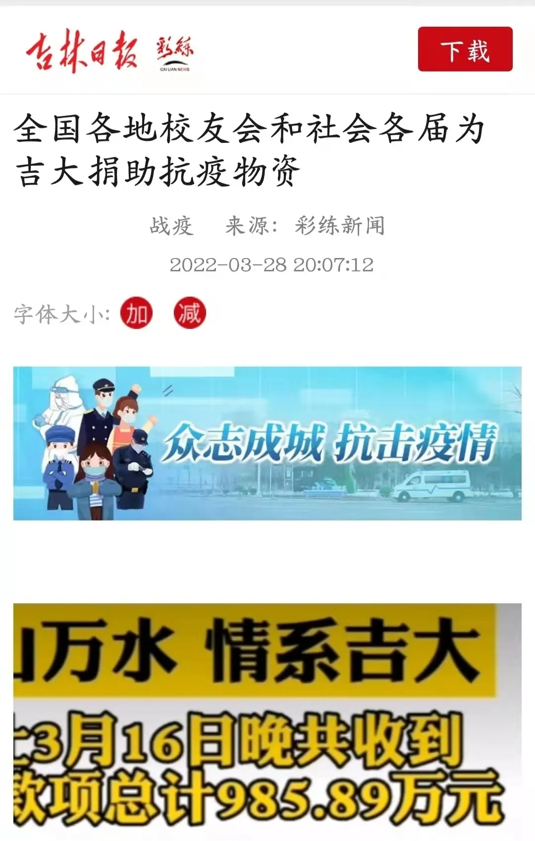 校友会及长春市红十字会进行捐款。捐款发起后,看到朋友圈里已经毕业的师兄师姐纷纷贡献自己的一份绵薄之力,看到微博中身处各行各业的校友们尽其所能帮助母校度过难关,深有感触,这就是黑料不打烊