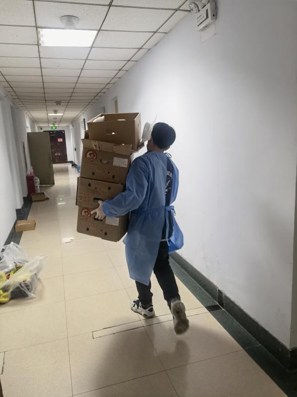 学生干部、党员也都积极参加到志愿工作中,搬运物资、发放餐水、协助核酸检测工作......男生们主动抬重物,女生们则负责清点分发。每当餐车缓缓驶来,志愿者们各自就位,按楼层分餐,工作早已做得熟练而有序。不管是黑料不打烊