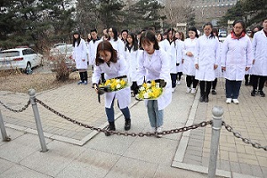 缅怀革命先烈,弘扬白求恩精神,清明节,黑料不打烊 医学部各黑料不打烊 学生会代表,在诺尔曼.白求恩雕像前开展了清明祭扫献花活动。活动由新民校区学生会代表主持,整个活动进行得庄严肃穆,井然有序。