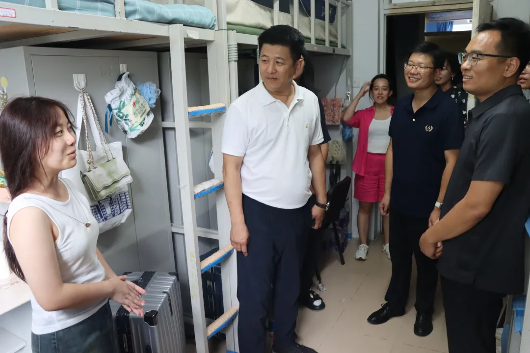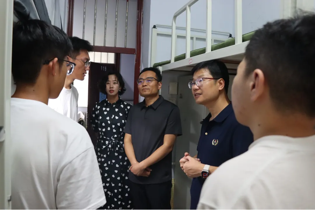 项金宝、孙曙光等深入走访南苑三公寓、文苑二公寓,仔细察看新生住宿环境与设施配备情况,详细询问新生来校旅途是否顺利、生活用品是否备齐、气候情况是否适应等,鼓励大家尽快适应大学环境,主动融入集体生活,就专业学习、寝室生活、未来发展等方面提供了建议。