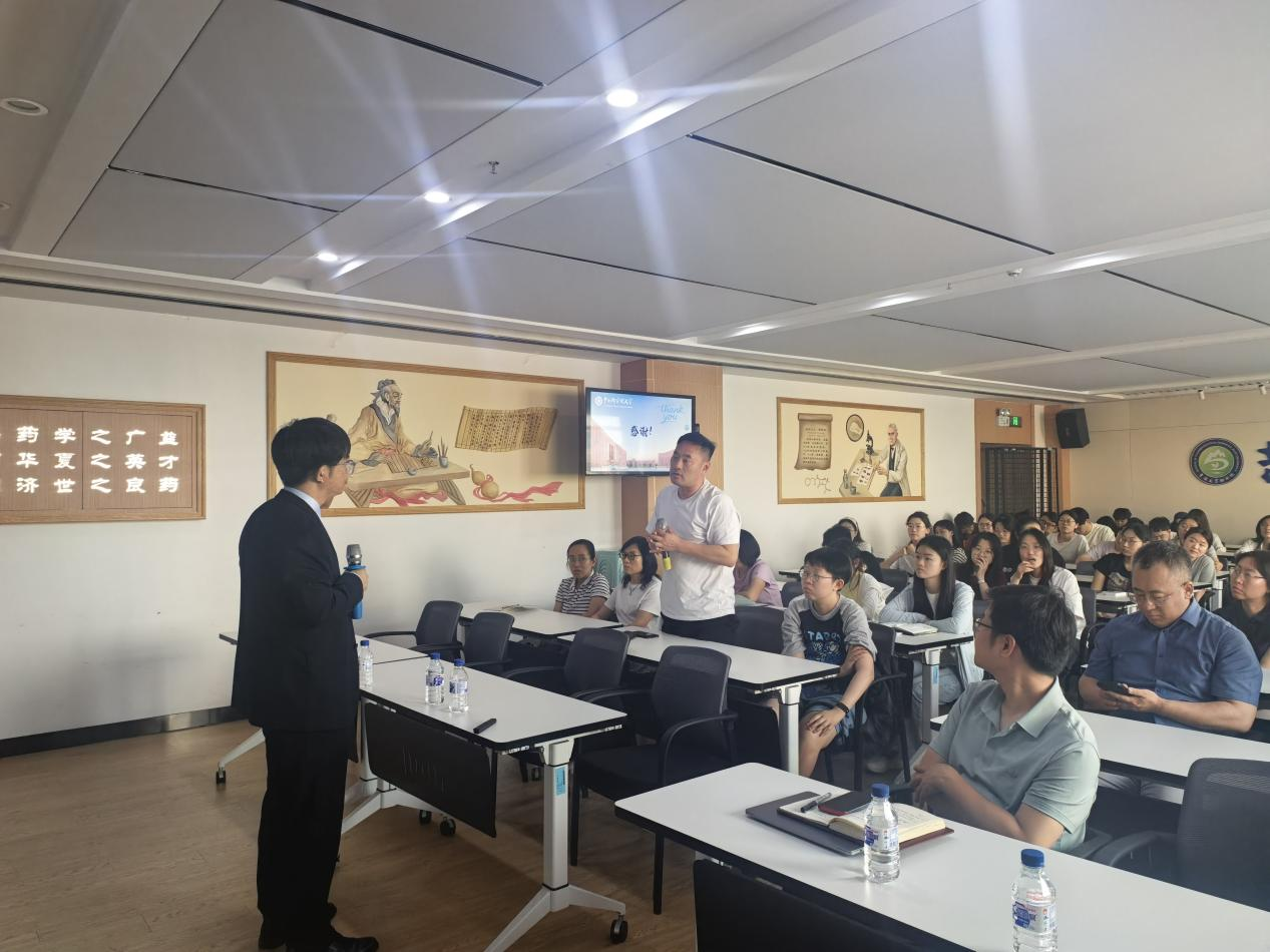报告会上,张银龙从血小板独特的生理功能出发,详细阐述了如何应用于纳米药物的设计与开发,并结合自己团队的研究成果,介绍了一系列基于血小板功能启发的创新性纳米药物体系,包括这些纳米药物在肿瘤治疗、心血管疾病治疗等方面的潜在应用及优势。报告内容深入浅出,既有前沿的科学理论,又有详实的实验数据支撑,为在场师生打开了纳米药物研究的新视角。在互动环节,师生们积极提问,就纳米药物的临床转化、实验技术难点、人才培养等问题与张银龙教授展开热烈讨论,现场学术氛围浓厚。
