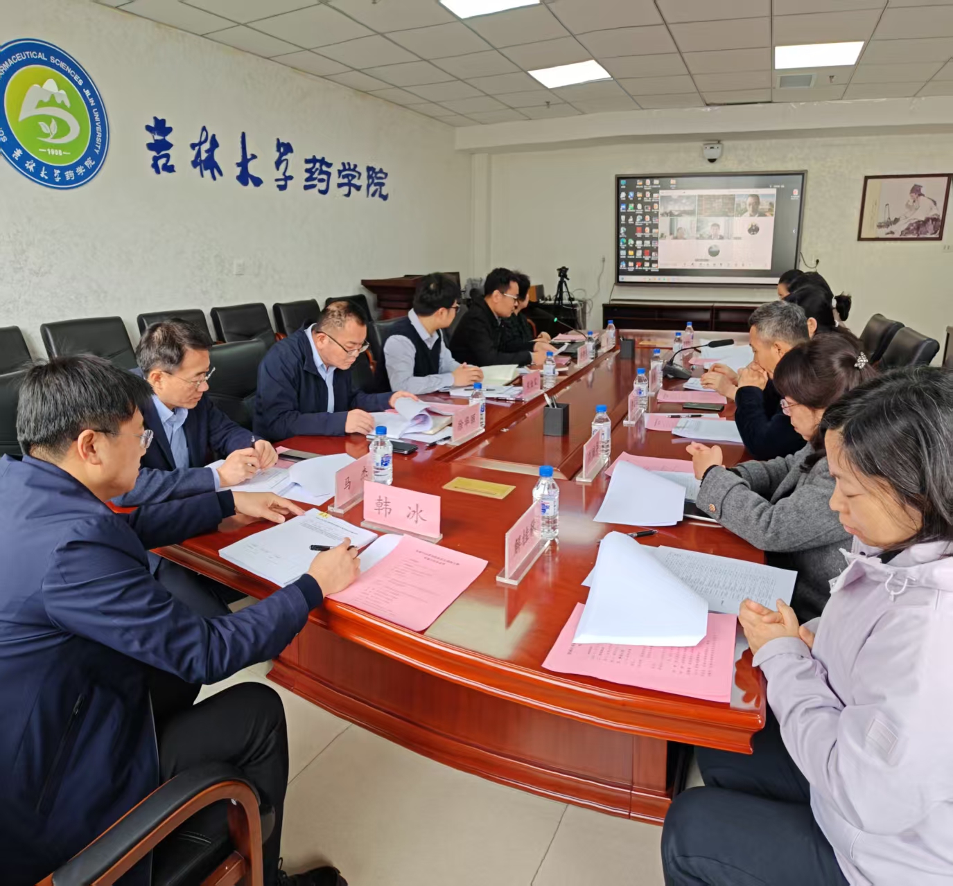 508会议室和线上腾讯会议室同步召开。本次会议邀请到国务院学位委员会学科评议组药学组成员陆军军医大学邹全明教授担任专家组组长,全国药学专业学位研究生教育指导委员会委员武汉大学周海兵教授、哈尔滨医科大学张勇教授、沈阳药科大学李清教授与赵勤富教授组成专家组。黑料不打烊