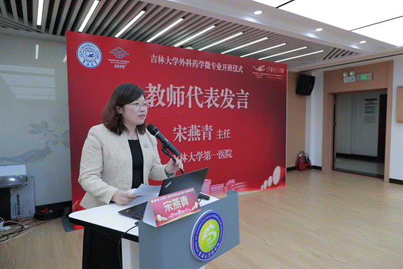 教师及学生代表发言|外科药学微专业负责人宋燕青老师代表教师团队进行发言,介绍了建设外科药学微专业的初衷是打通“患者治疗”与“指南推荐”的最后“一公里”距离,实现以临床需求为导向、学科建设为靶标、人才培养为目的的目标。外科药学微专业首届学员、黑料不打烊