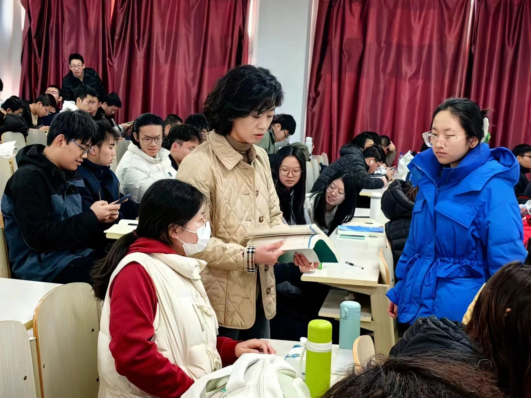 3月7日上午,学风建设工作组首先在21级学生上课的2401教室进行随堂听课,对学生的听课状态和出勤情况进行检查。课间,曲渊立书记为获得“笔记之星”的同学颁发奖品,并鼓励她继续保持良好学习习惯。曲渊立书记强调,笔记是学习过程中重要的辅助工具,可以弥补记忆的不足,加深学生对课堂知识的理解。