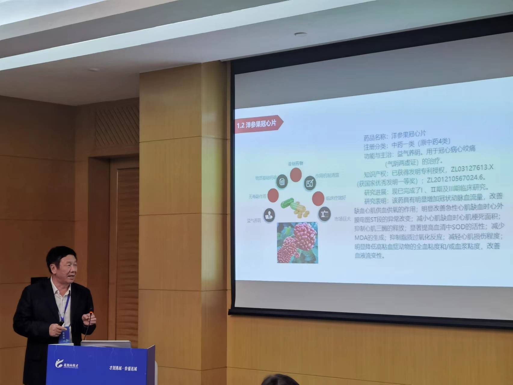 外籍院士李平亚教授应邀参加了花果山英才双创周-“三新一高”产业人才项目对接会,进行了“洋参果冠心片及伪人参皂苷GQ注射液项目”路演,该项目受了参会的连云港市政府领导、市工信局、连云港各县区分管招引项目分管领导、天汇资本以及行业专家的一致好评,纷纷表示该系列创新药的面市,将对我国中药的新药研发带来巨大影响和引领作用。次日上午,李平亚教授一行应邀到江苏康缘药业就新药成果转化落地事宜,与康缘药业主要领导及研发、技术部门负责人进行了深入交流,公司领导表示李平亚教授在人参、西洋参等方面的新药研究成果具有良好的市场前期,双方就项目合作事宜以达成初步合作意向。