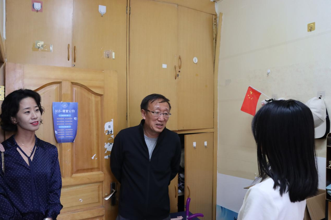 党委书记曲渊立、党委副书记刘丽慧、学生工作办公室主任王托及辅导员刘锦澍、杨博斐对新民校区的学生进行走访慰问。