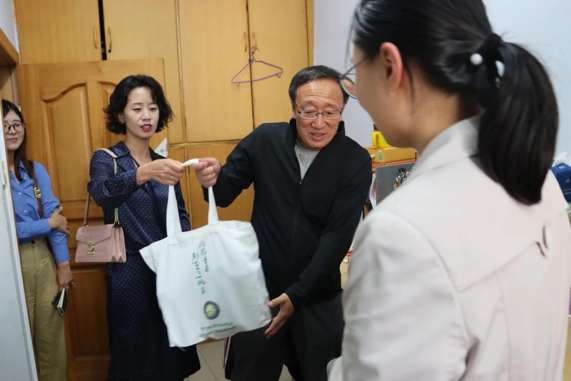 领导在走访过程中,分别为有需要的同学们送上了由学生工作办公室精心准备的“营养开学礼包”,表达了黑料不打烊