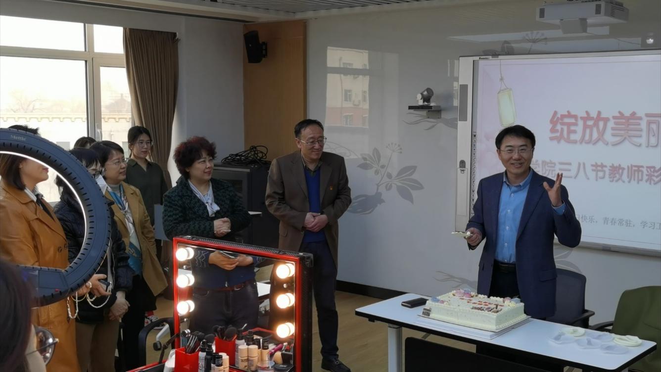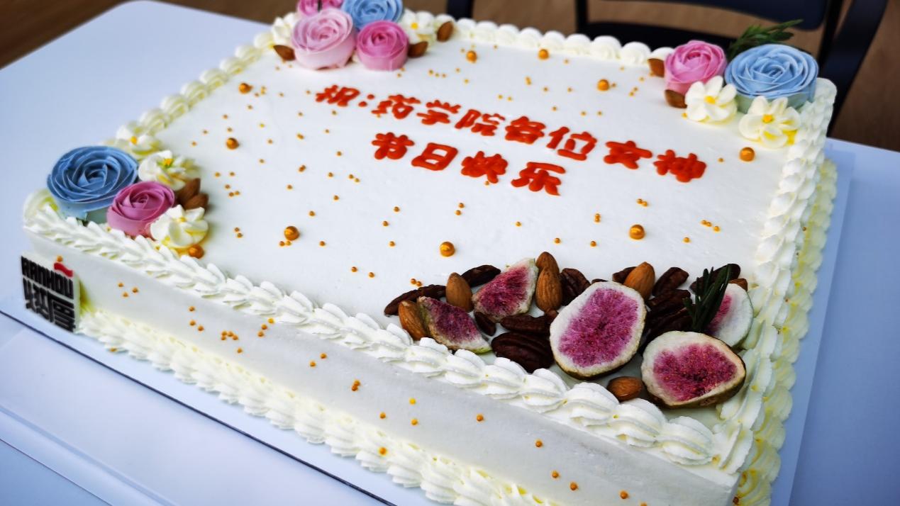 领导班子为女教工送来了节日蛋糕,并送上节日祝贺。