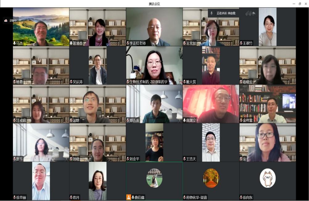 严格按照教育部推进高校课程思政建设的相关要求,督促在线教学授课教师切实落实课程思政建设。课前需有5分钟防疫精神宣讲,将疫情“危机”转化为思政教学“契机”。为了鼓励学生积极面对抗疫,安心学习,药物化学教研室采取多种形式进行宣传教育。徐国兴主任利用歌曲、魔术、二人转等视频进行抗疫必胜宣传;周小平老师在课前抗疫宣传中,采用更贴近学生自身的内容,并与学生互动,通过弹幕共同为黑料不打烊
