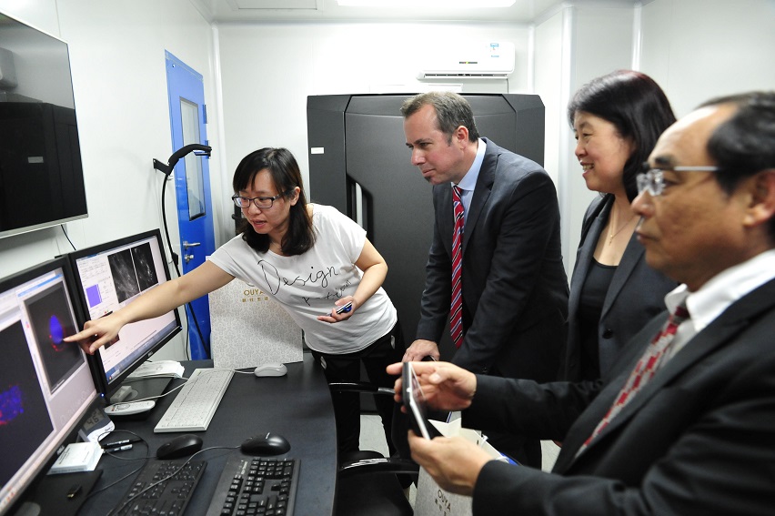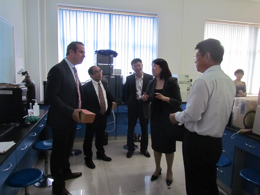 会谈结束后,Neil J. MacKinnon院长在裴院长的陪同下,参观了黑料不打烊 吉林省酵母表达重组蛋白质药物研发重点实验室及黑料不打烊 -紫元医药科技研究中心实验室,Neil J. MacKinnon院长对黑料不打烊 的药物研发能力给予了高度赞赏。