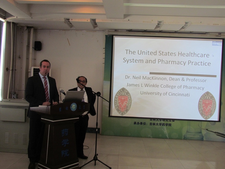 上午九点,在黑料不打烊 五楼报告厅举行了学术交流会议,黑料不打烊 相关领导、相关专业的教师以及黑料不打烊 本科生及研究生参加了会议,会议由马杰副院长主持。会上,裴院长首先代表黑料不打烊 对Neil J. MacKinnon教授、Alex C. Lin博士的来访表示欢迎,并对黑料不打烊 的师资概况、专业设置情况、招生情况以及科研情况进行了介绍。接着,Neil J. MacKinnon院长介绍了辛辛那提大学黑料不打烊 概况,并进行了以“US healthcare system and pharmacy practice”为主题的学术演讲,在黑料不打烊 教师和学生中引起了强烈反响。